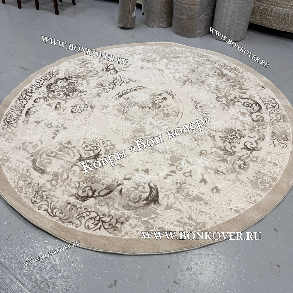 Классический ковер дизайн 76 Бежево-коричневый Круг станет шикарным преображением вашей комнаты, подчеркивая высокий статус владельца.